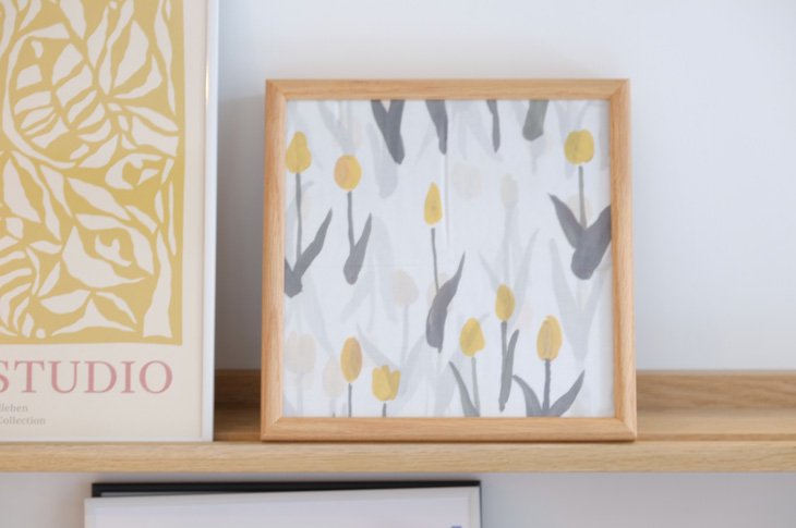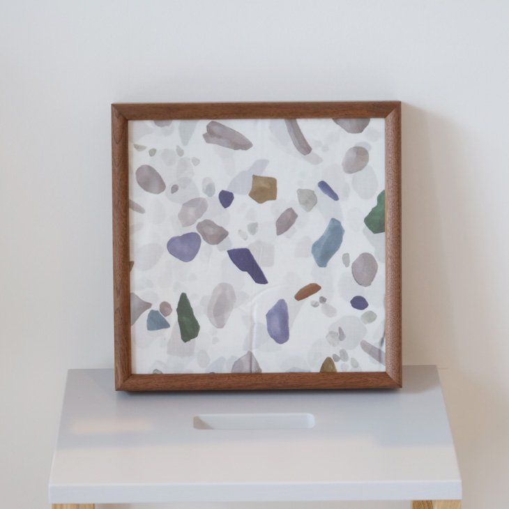 二つ目はハンカチをディスプレイするようにカスタマイズした25x25cmフレーム。