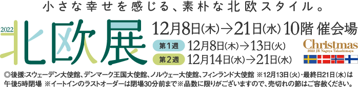 12/8(木)から開催されるジェイアール名古屋タカシマヤ『北欧展 2022』に出店いたします。