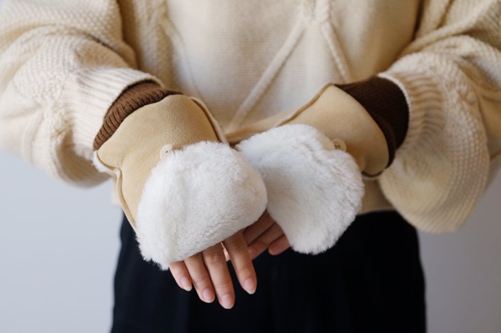 指先を出してスマホ操作にも対応した滑らかな触り心地のグローブ。