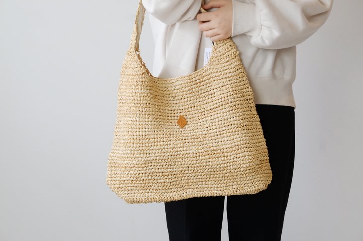 爽やかな透かし編みが目を惹くシンプルなバスケットバッグ。