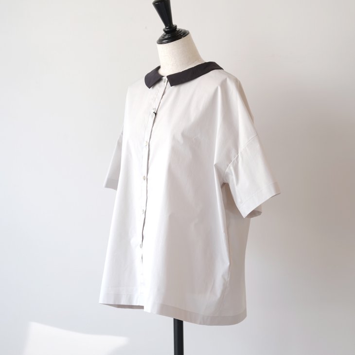 衿を黒にしたバイカラーブラウス。