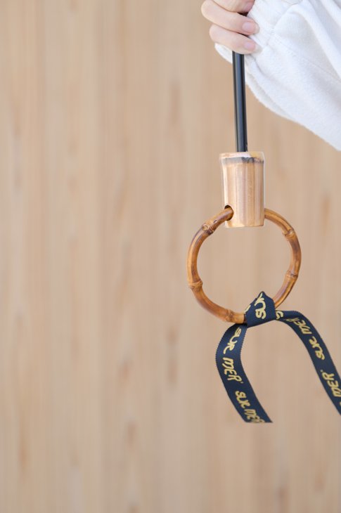 天然木ハンドルがナチュラルな雰囲気の折りたたみ傘。