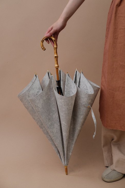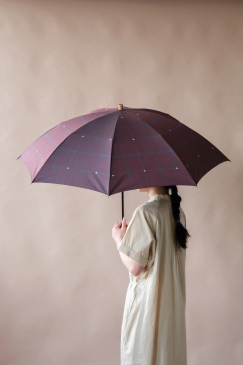 綿のマットな質感とリネンの光沢が上品な長傘。