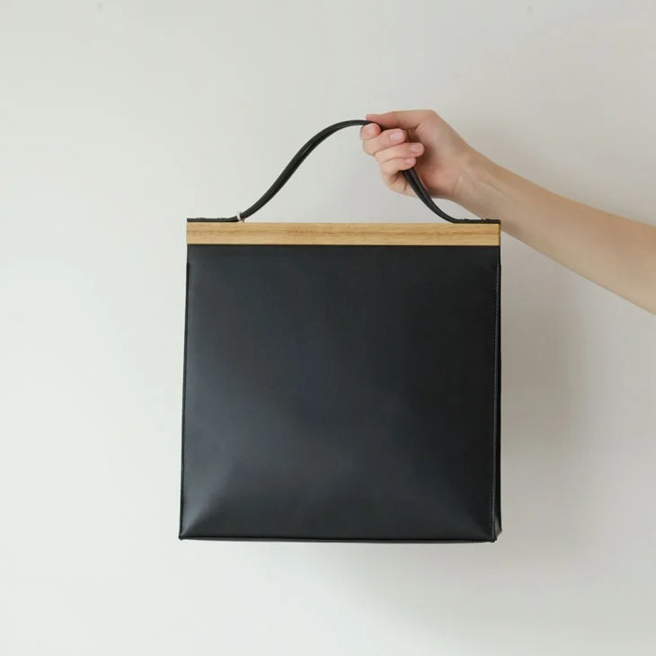 yuruku (ユルク) | Clap Wood Square Hand Bag L (black)