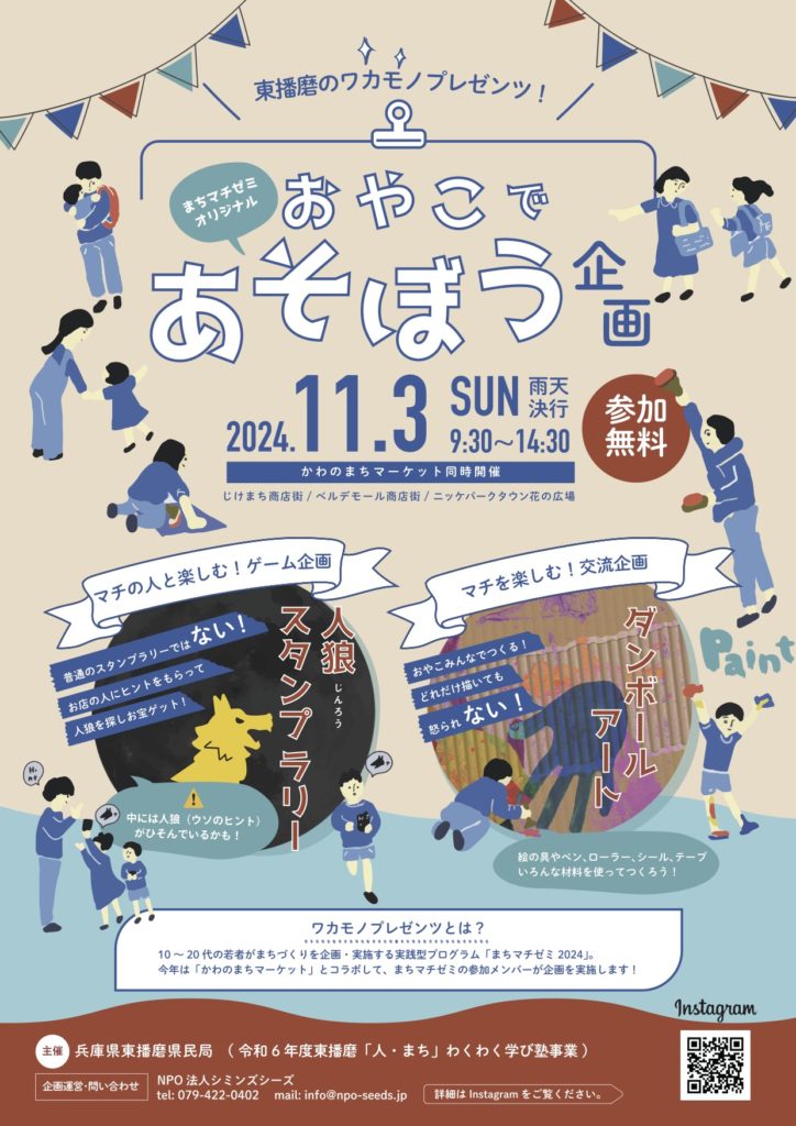 また当日は、中学生〜社会人の14人の東播磨の若者たちが企画するおやこであそぼう企画」が同時開催されます。